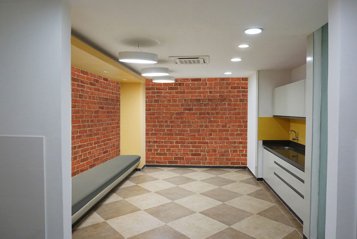 DULT is a government organisation, the task given for us to design their Design studio. The studio was designed to be a people centric workspace that incorporated a blend of fluid and adaptive workspaces. The bold interior accent colour & using various materials like natural stone jaali, fabric & back painted glass made this studio unique and distinct.